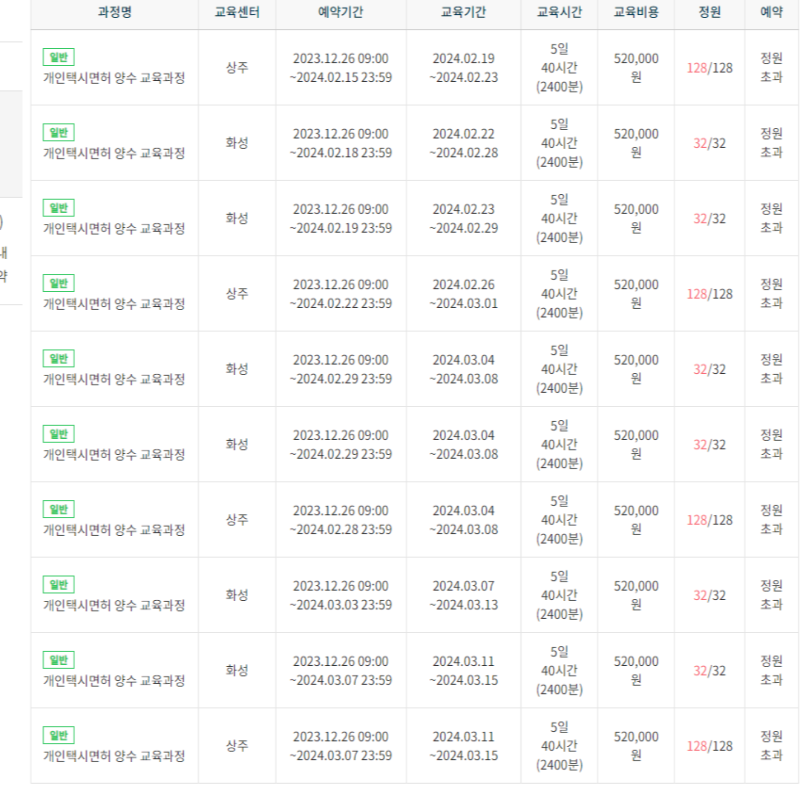 최근 개인택시 양수교육이 마감이 빨리 되기 때문에 일정을 미리 확인하시고 양수교육을 받으시길 바라겠습니다.