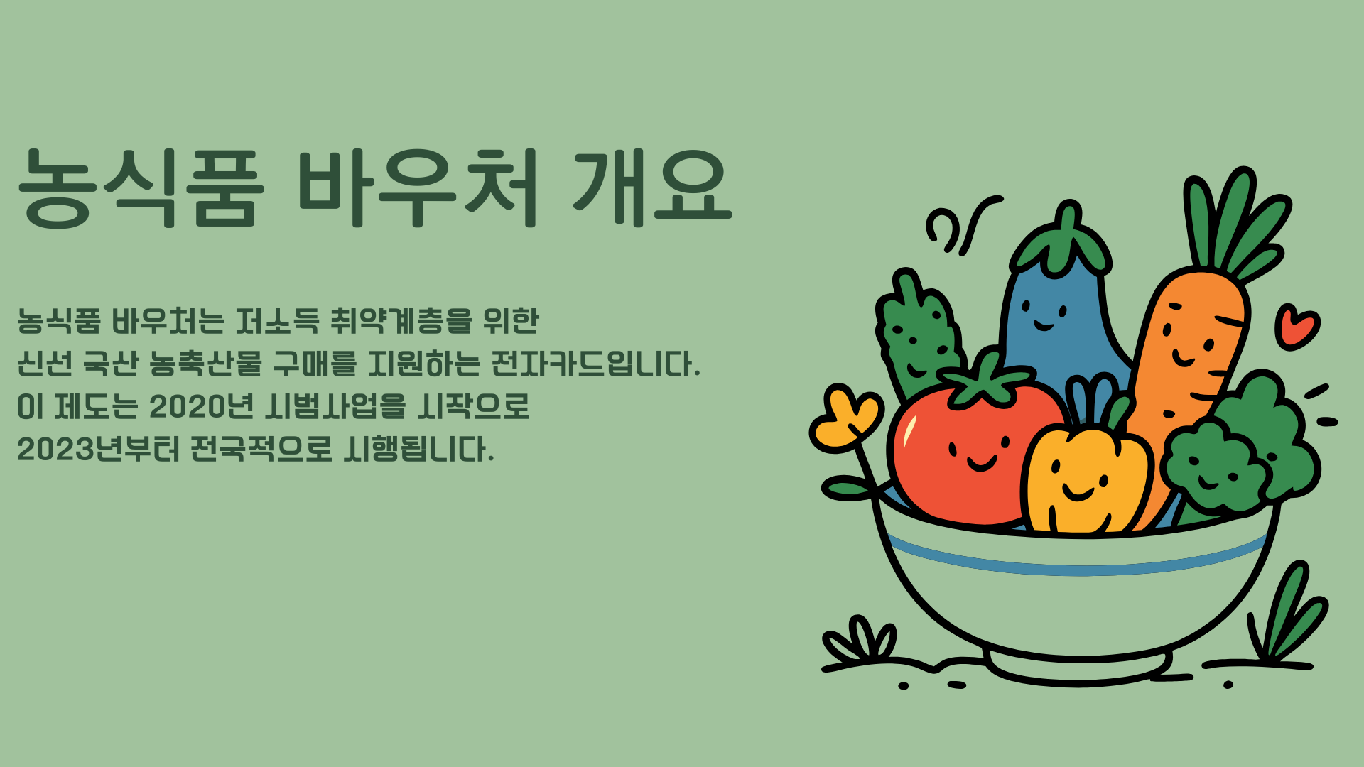 바로 23일부터 전국적으로 본격 시행되는 농식품 바우처 제도 때문인데요.