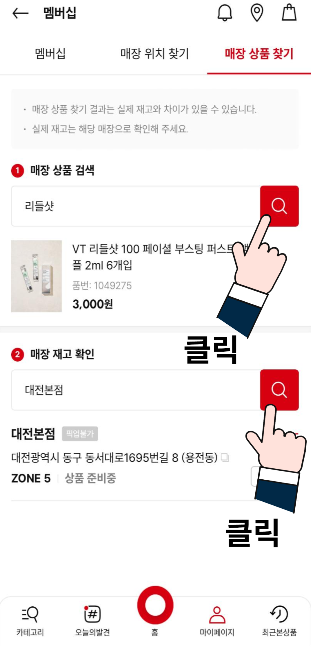 4) 저는 다이소 매장 리들샷 재고조회를 해보았습니다.