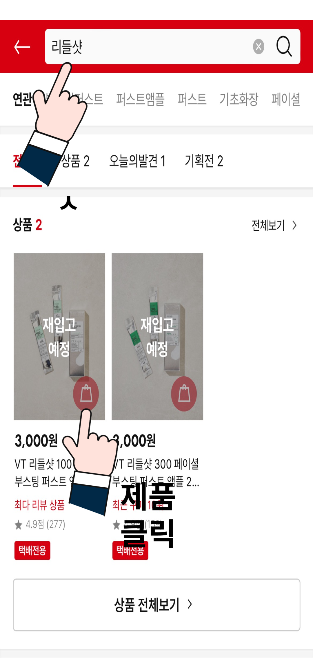 1) 상품이 재입고 예정이라고 뜨면 상품을 눌러 페이지에 들어갑니다.