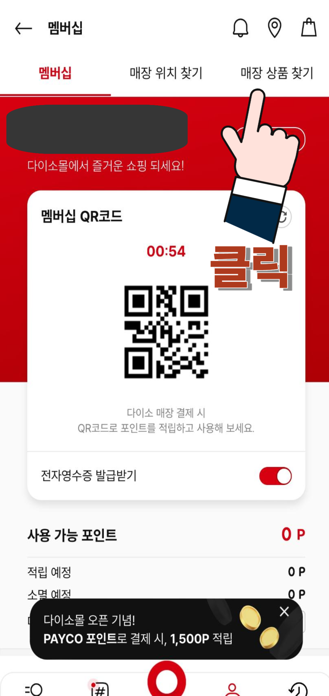 2) QR코드 화면을 누르면 멤버십 화면으로 넘어갑니다.