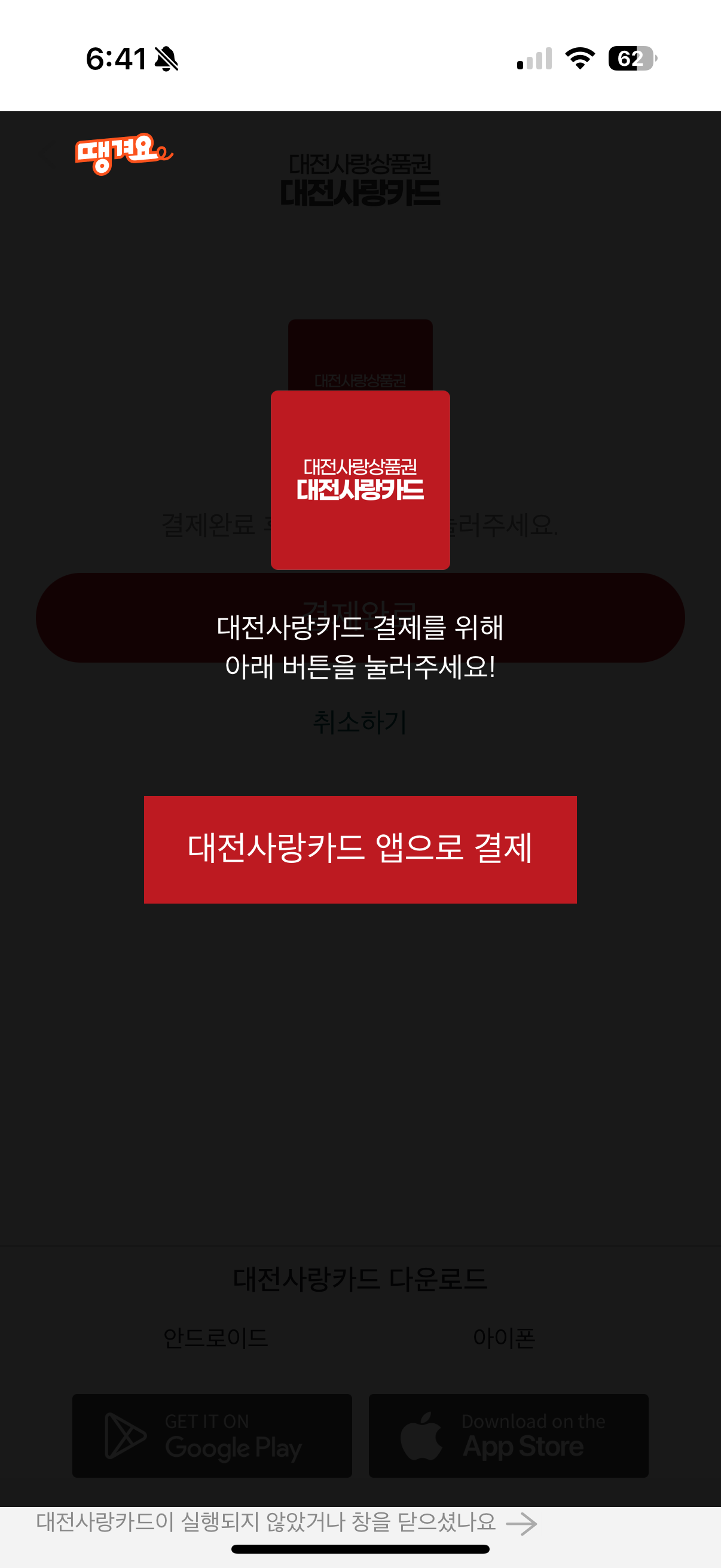 대전사랑카드(구 온통대전) + 땡겨요 앱 + 민생회복 소비쿠폰 + 2회 주문 이벤트 쿠폰까지 결합하면