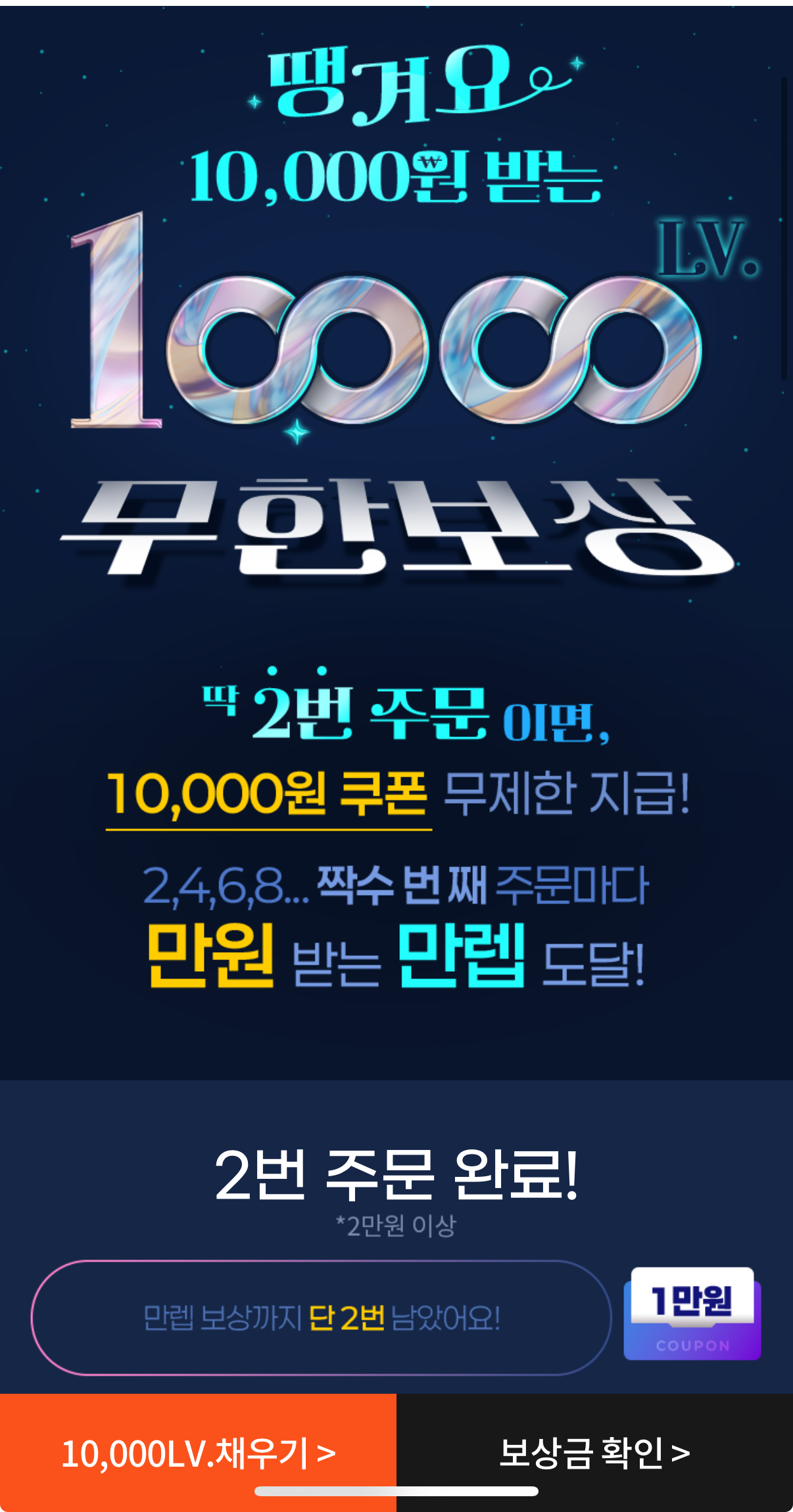 3‑1. 땡겨요 어플 이벤트: 2회 주문하면 1만 원 쿠폰 추가!