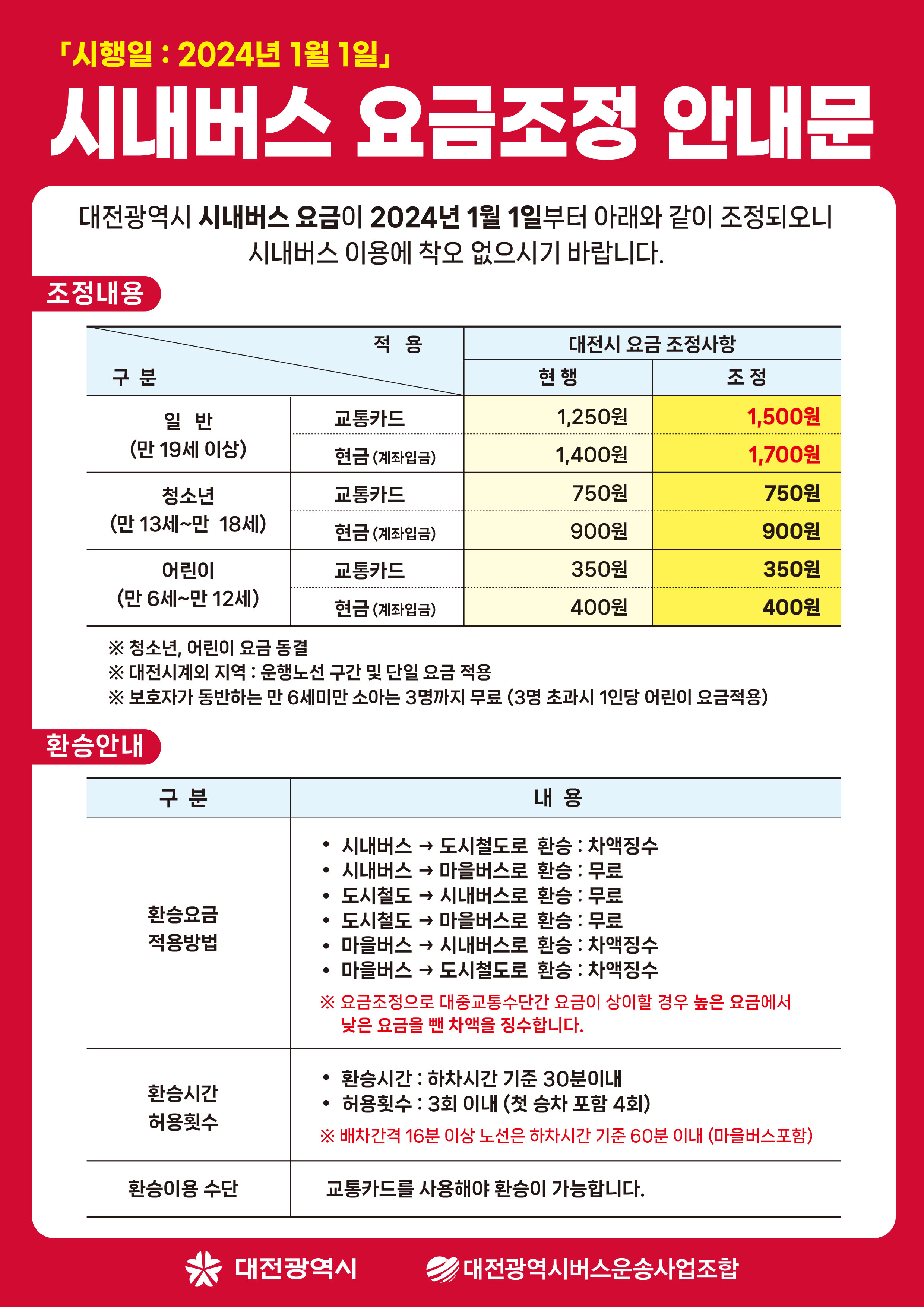 대전도 2015년 7월 1일 이후 10년 만에 요금이 오르게 되었습니다.