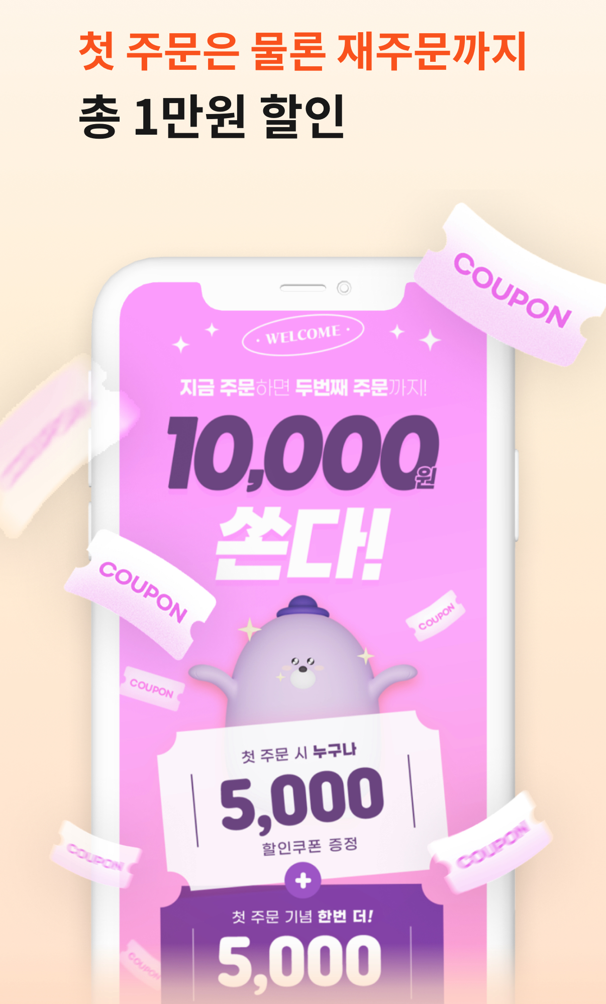 첫 주문 후 5,000원 쿠폰을 추가로 받게 됩니다.