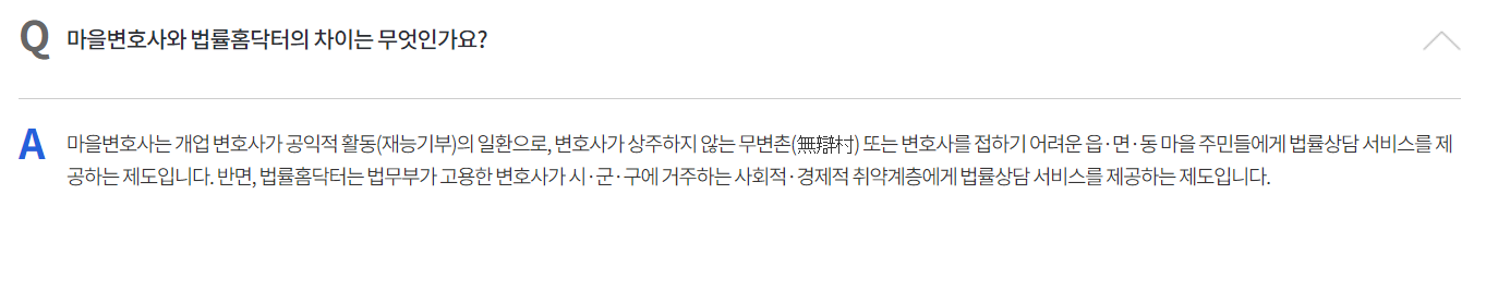 3) 마을변호사와 법률홈닥터와의 차이는 다음과 같습니다.