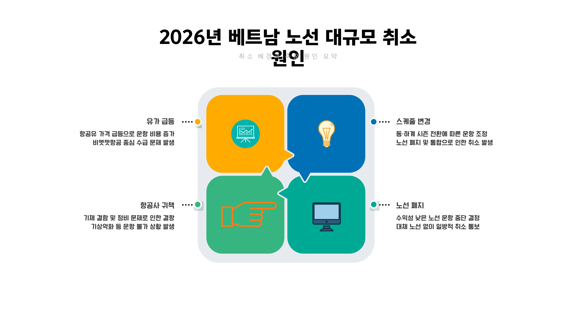 베트남행 항공편이 갑작스럽게 취소되는 이유는 크게 세 가지입니다.