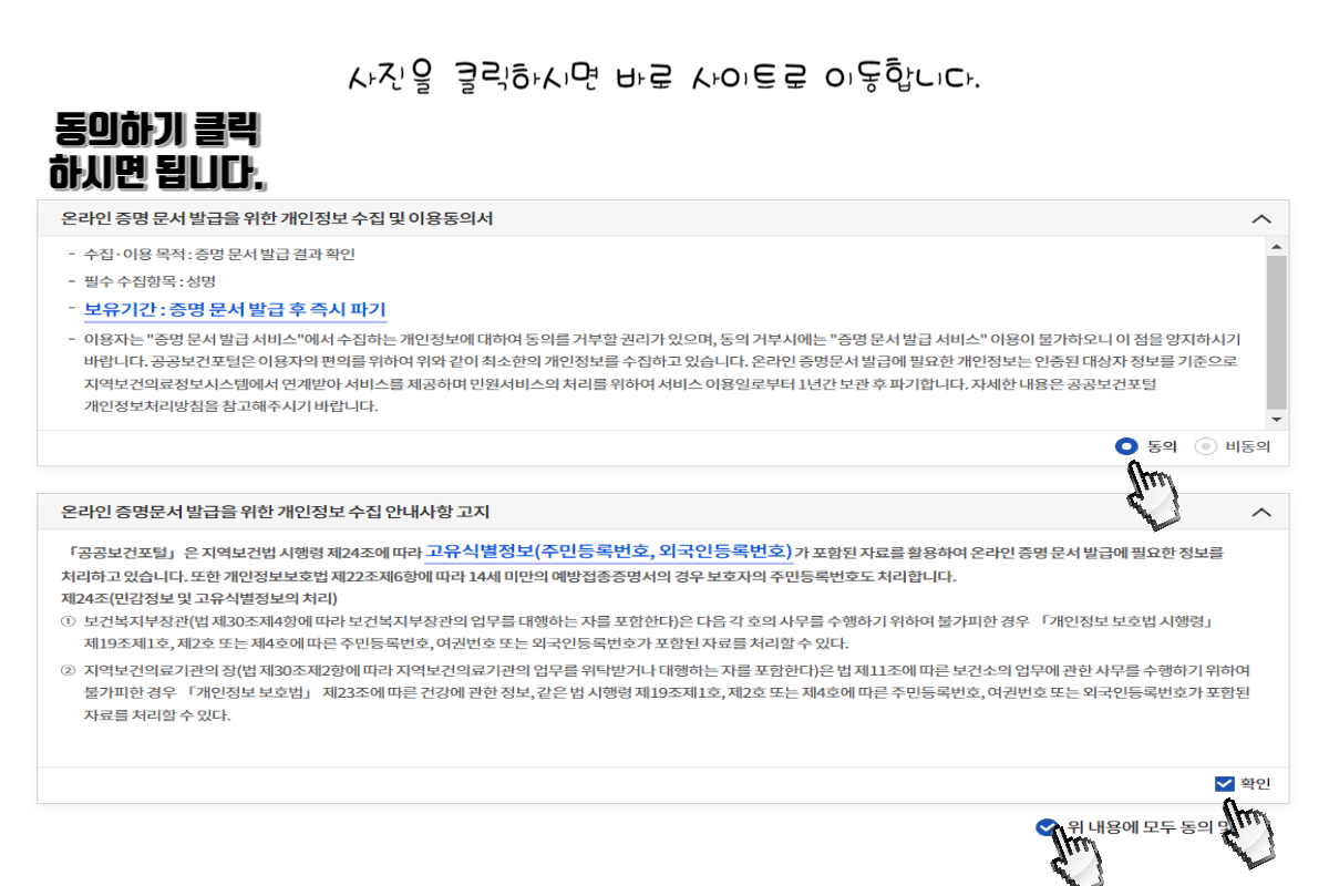 2) 개인정보 수집 동의를 하시면 됩니다.