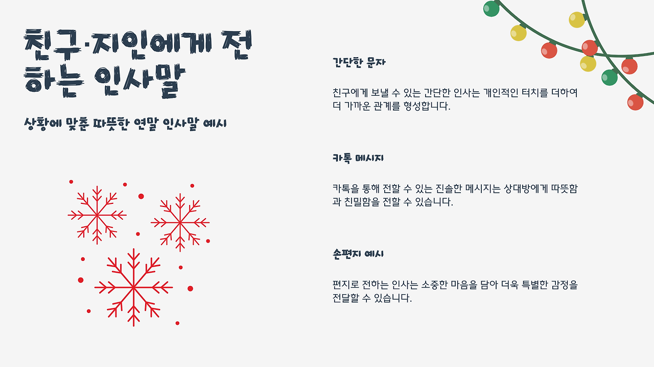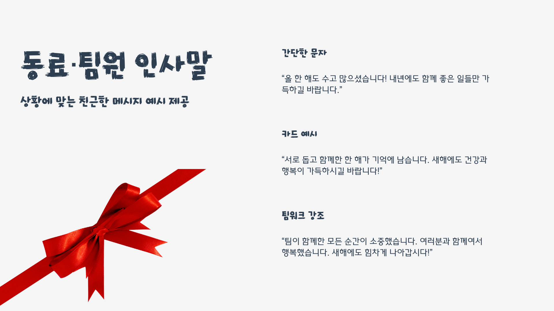 올해 마지막 인사가 필요할 때, 위 예시와 팁을 참고해서 여러분만의 따뜻한 마음이 잘 전해지길 바랄게요.