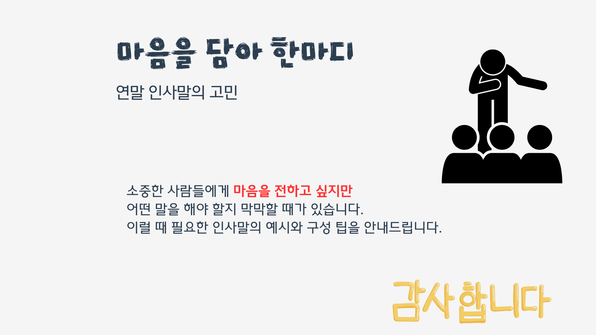 진심이 잘 담겨야 더 의미 있는 한 해로 마무리할 수 있겠죠?