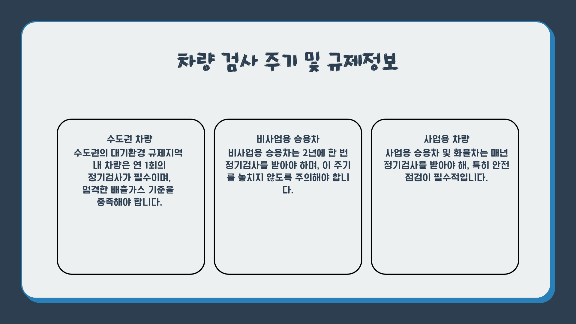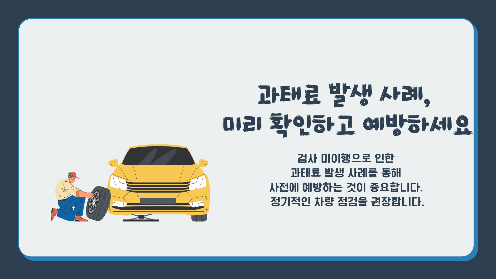 정기적인 자동차 검사는 나와 모두의 안전을 지키는 중요한 약속임을 잊지 마세요.