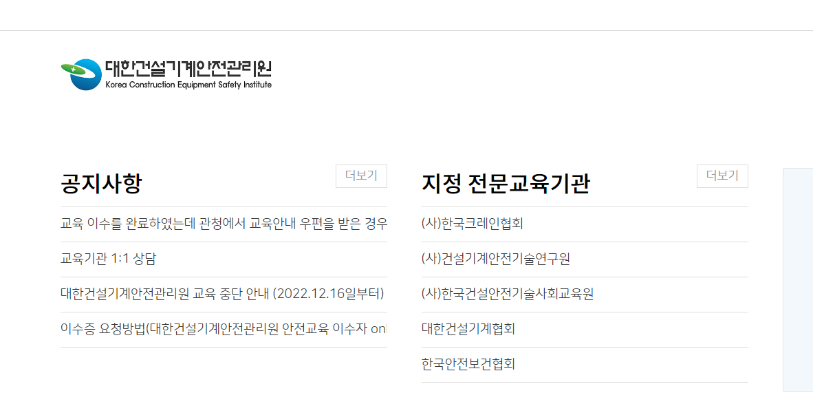 건설기계안전교육원 홈페이지입니다.국가위탁 건설기계조종사 안전교육, 이수증 발급